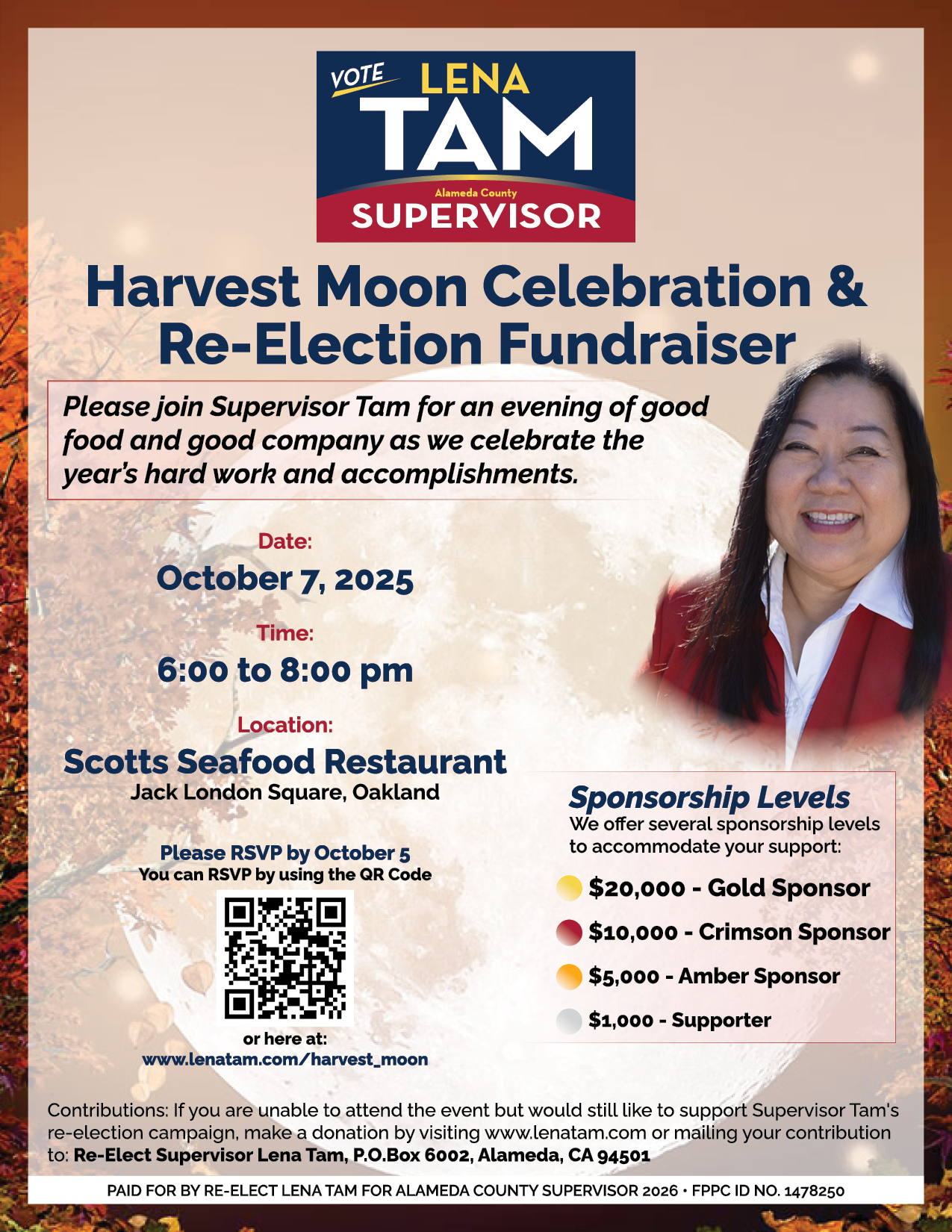 As summer transitions to fall, it’s time for another fundraiser in support of Lena Tam's re-election campaign for Alameda County Supervisor.